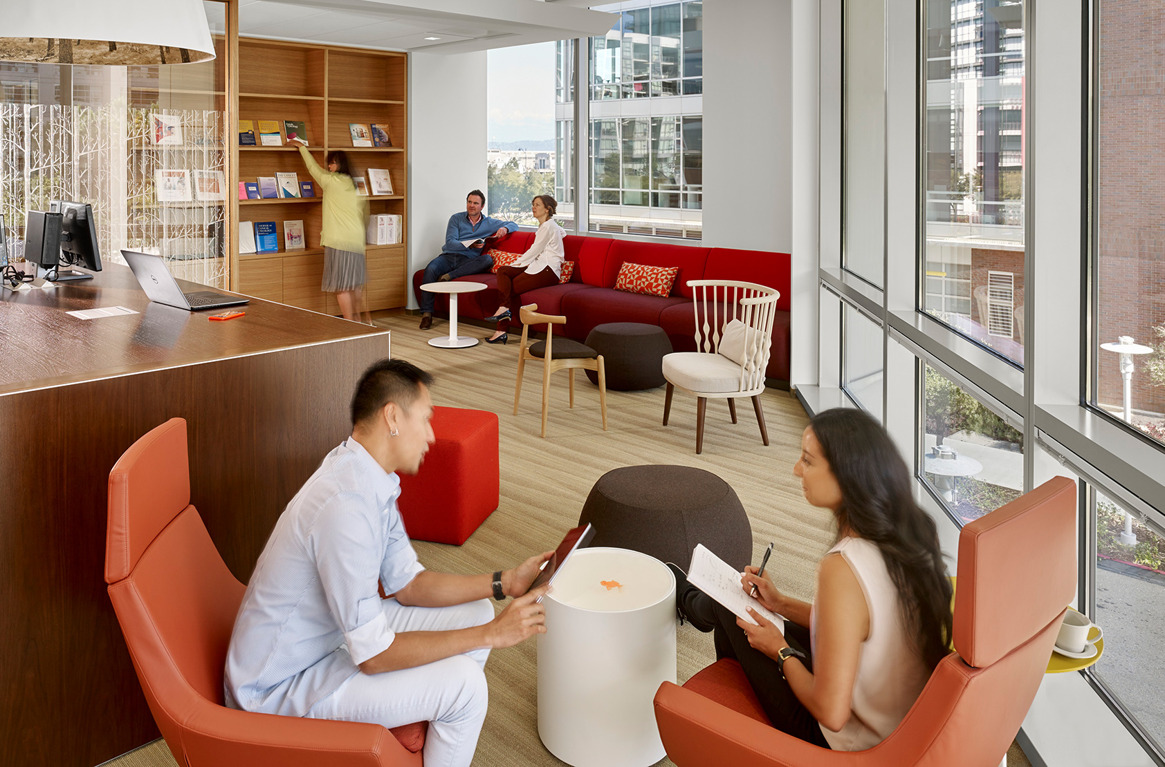 Infusing a sense of home comfort and regional pride, the design blends a soft neutral palette with "Nektar Orange" – while adding deeper tones inspired by the Golden Gate Bridge and warm California sunsets. Staff can now enjoy the benefits of home in their workplace.